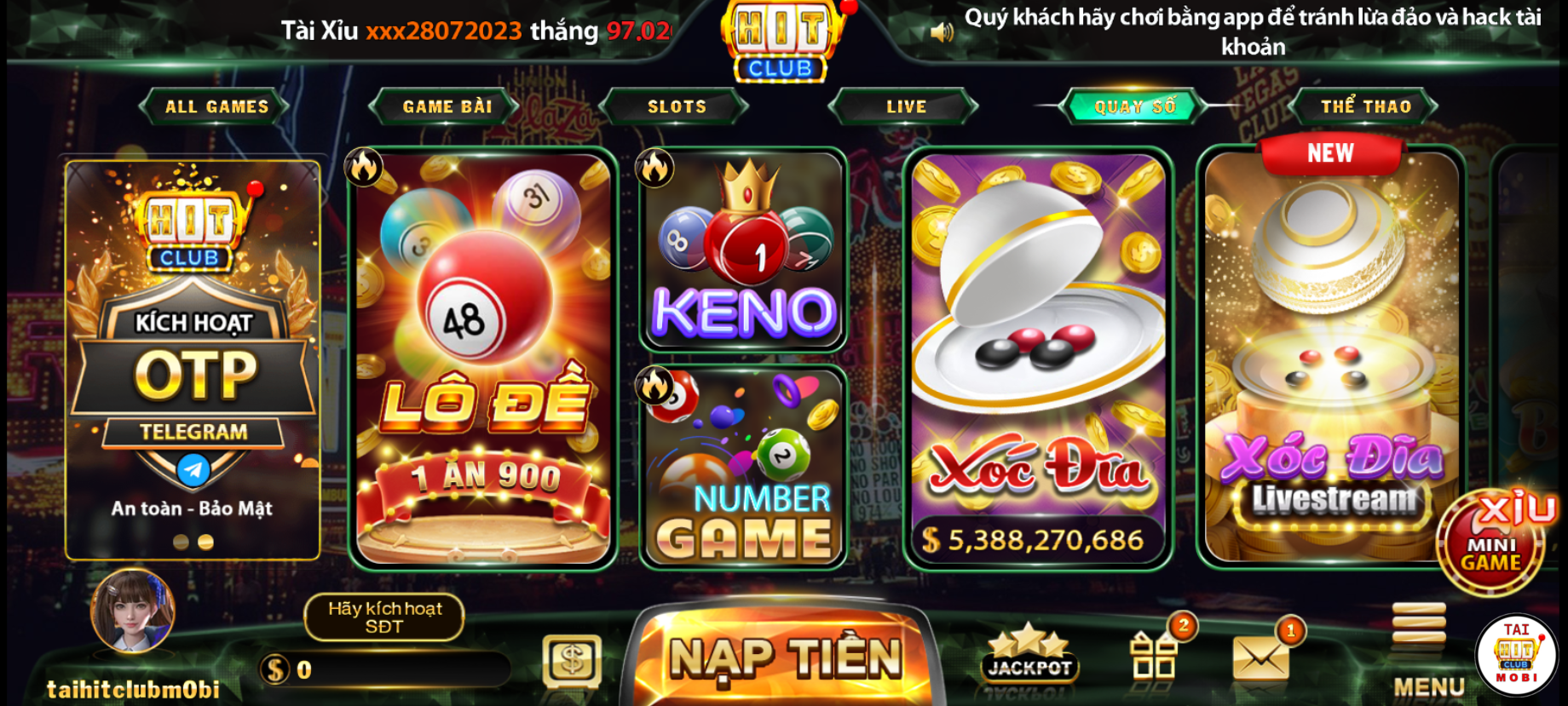 Hitclub thiết kế quy trình nạp rút đơn giản, số bước thao tác ít. Giao dịch được xử lý nhanh, giúp người chơi chủ động quản lý số dư. Điều này đặc biệt quan trọng với game có nhịp độ nhanh như tài xỉu.